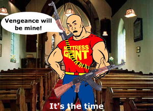 "Hitler shoots up a church and kills Mattress Giant's mother. Mattress Giant mourns and decides to avenge her death by sniping Hitler from a remote location - the moon. Hitler, that perceptive rascal, is fully aware of this assassination attempt and shoots Mattress Giant right through the scope, from Earth. Sieg heil!"